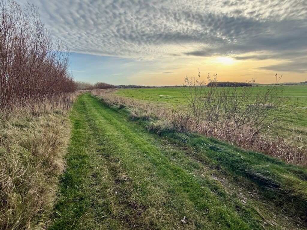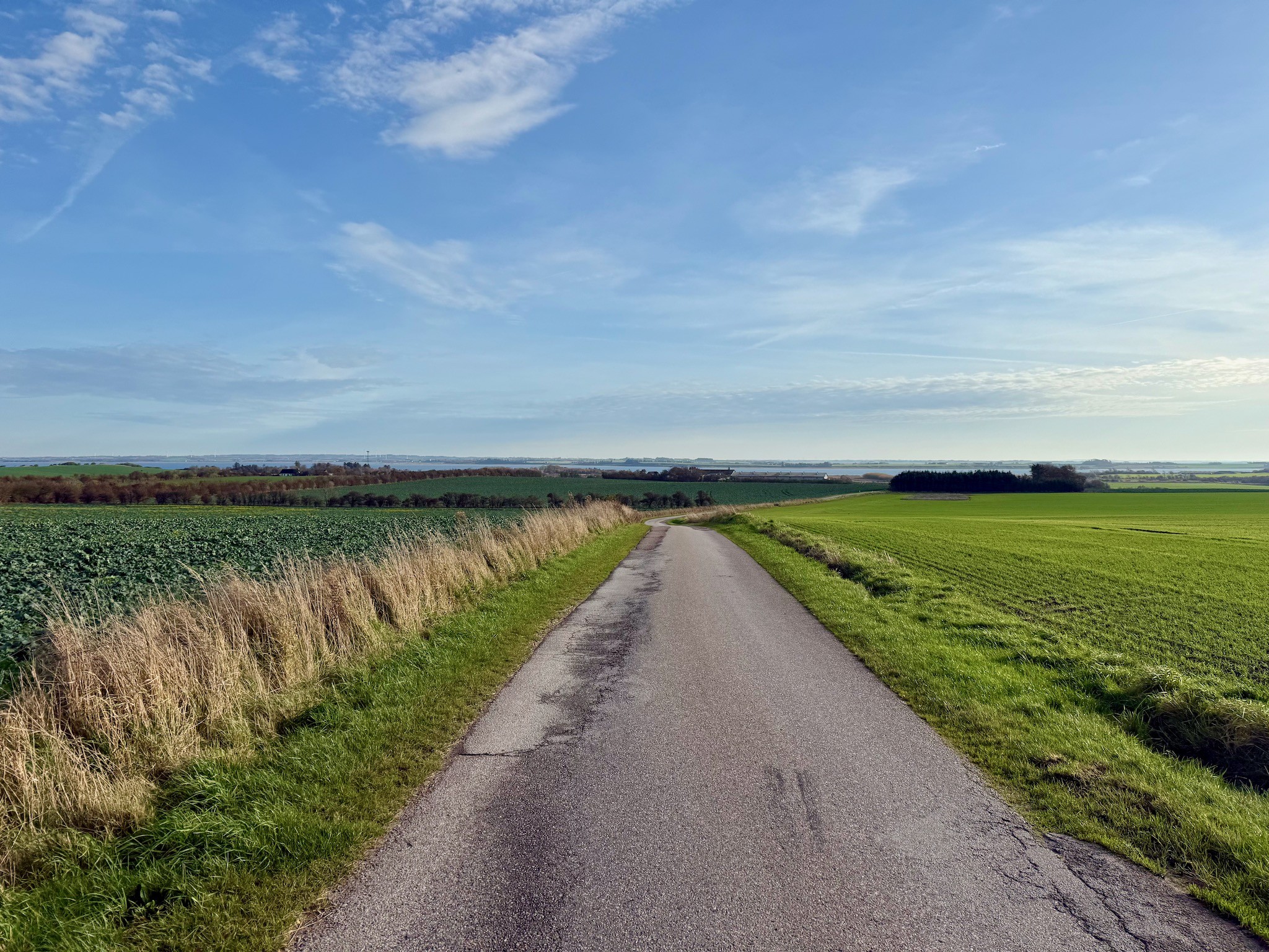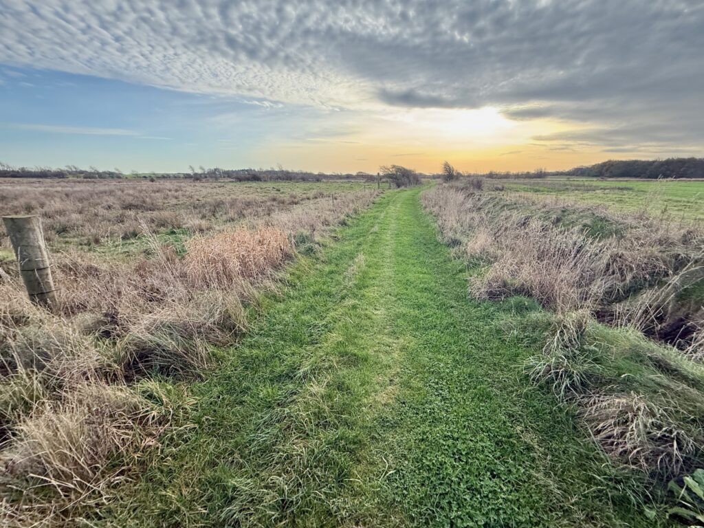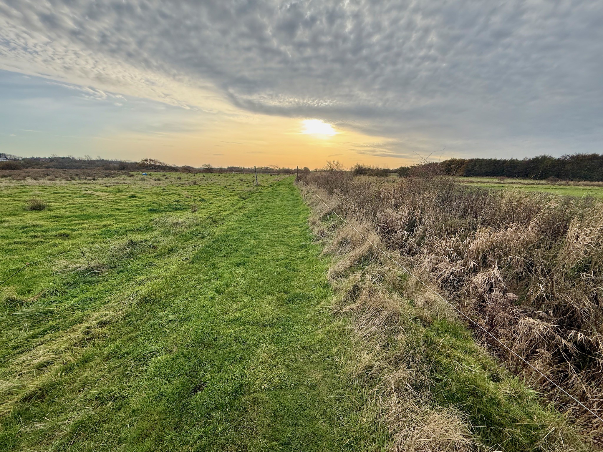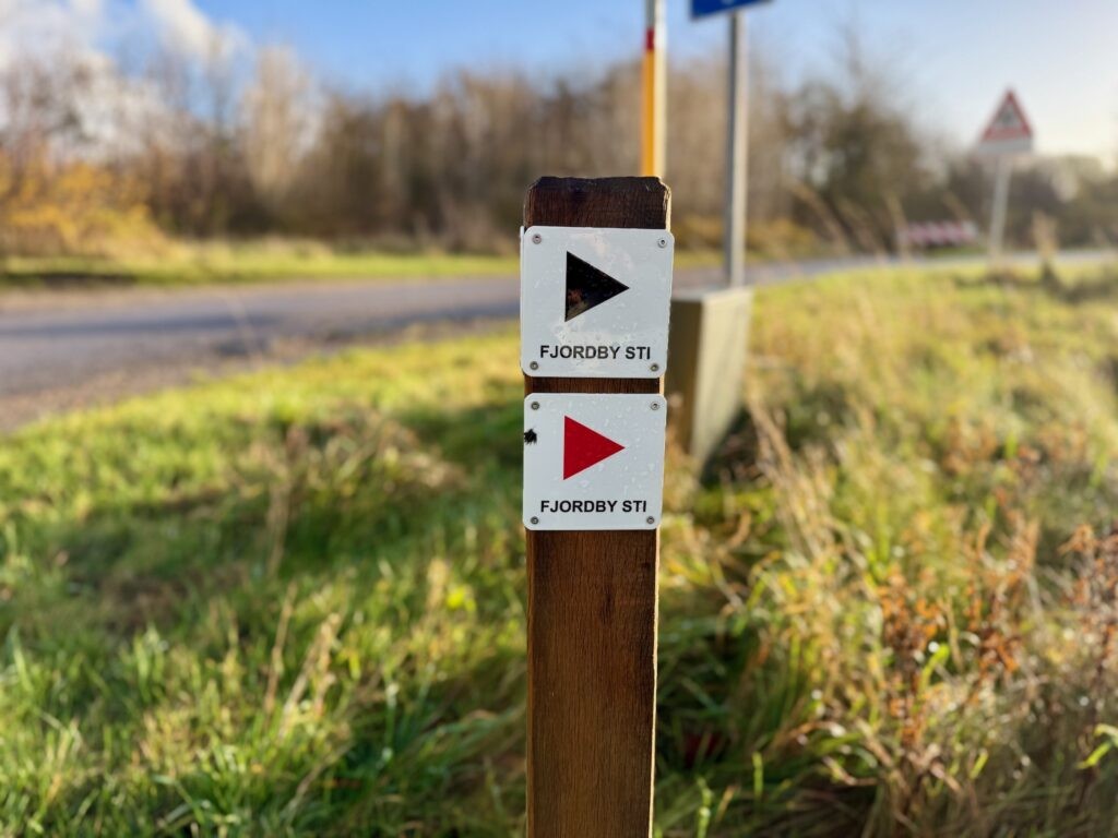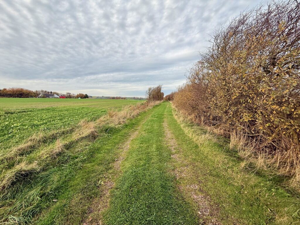 Længere nede ad Futtrupvej nås et vidtstrakt engområde, hvor der drejes til højre ad en markvej, der fører langs fjordengene.