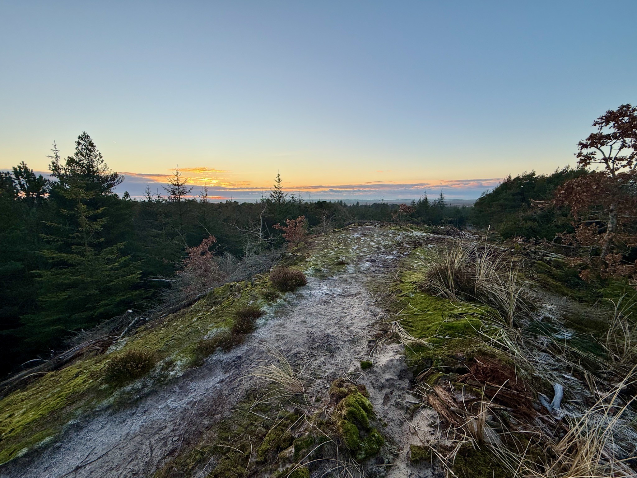 Ruten tager dig langt ind i skovens kerne, hvor naturens stilhed og variation skifter mellem tætte nåletræsområder, lysere sletter og små åbne partier.